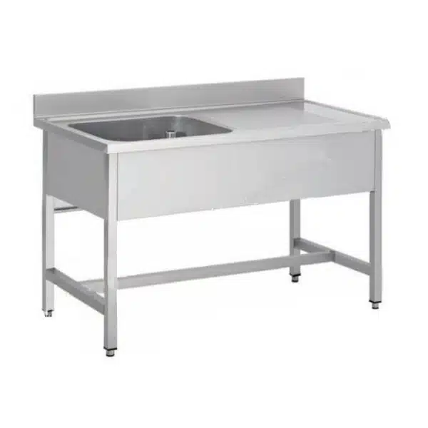 Plonge soudée sur pieds carrés sans étagère, inox AISI 304, indispensable pour assurer la propreté de vos vaisselles et de vos ustensiles de cuisine.