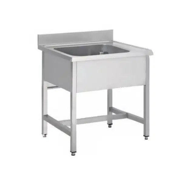 Plonge soudée sur pieds carrés sans étagère, indispensable pour assurer la propreté de vos vaisselles et de vos ustensiles de cuisine.