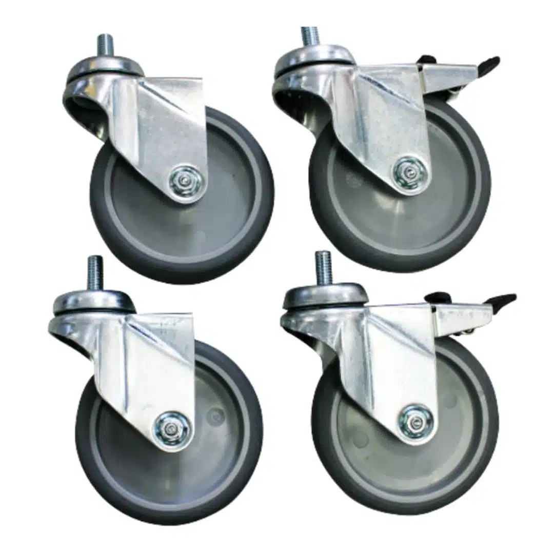 Plus-value pour roulettes ø 125 mm chape inox (2 avec freins, 2 sans frein)