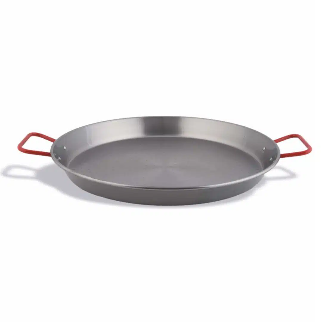 Poêle à Paella en tôle acier Acier au carbone, permet de bien préparer vos paellas facilement.