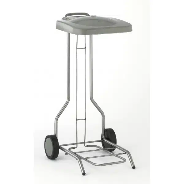 Porte-sac mobile avec couvercle, pour garantir le respect de l’hygiène au sein d’une cuisine professionnelle.