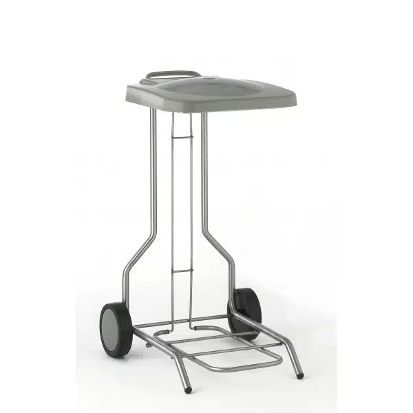 Porte-sac mobile avec couvercle, pour garantir le respect de l’hygiène au sein d’une cuisine professionnelle.
