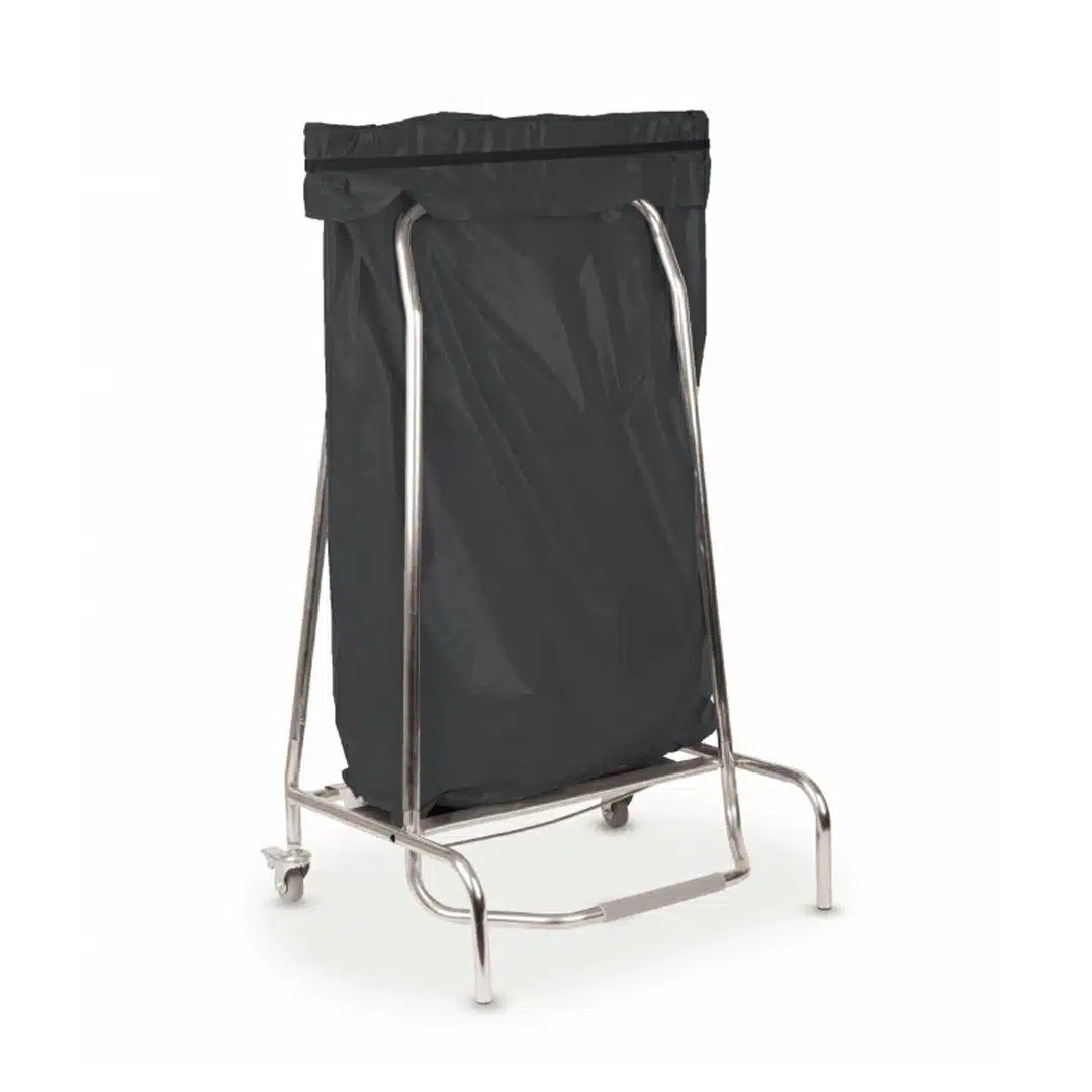 Porte sac poubelle inox, idéal pour un déplacement plus aisé grâce à ses 2 roulettes pivotantes avec freins tout en ayant un bon maintien du sac.