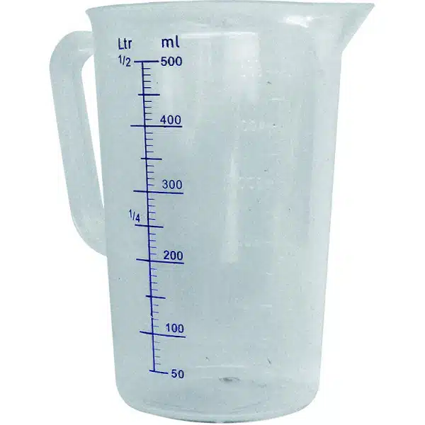 Pot mesure en polypropylène, ustensile de cuisine permettent un écoulement correct des liquides.