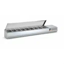 Présentoir à ingrédients, couvercle inox, 336 L, 9 bacs GN 1/4