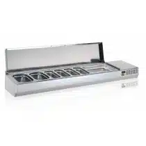 Présentoir à ingrédients, couvercle inox, 396 L, 10 bacs GN 1/3