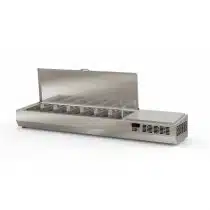 Présentoir à ingrédients, couvercle inox, 396 L, 7 bacs GN 1/3