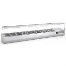 Présentoir à ingrédients, vitre pare haleine, 336 L, 10 bacs GN 1/4