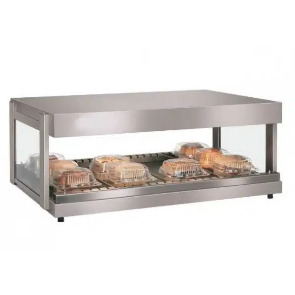 Présentoir Chauffant,horizontal simple, spécialement conçu pour assurer le maintien des produits emballés ou en boîte.