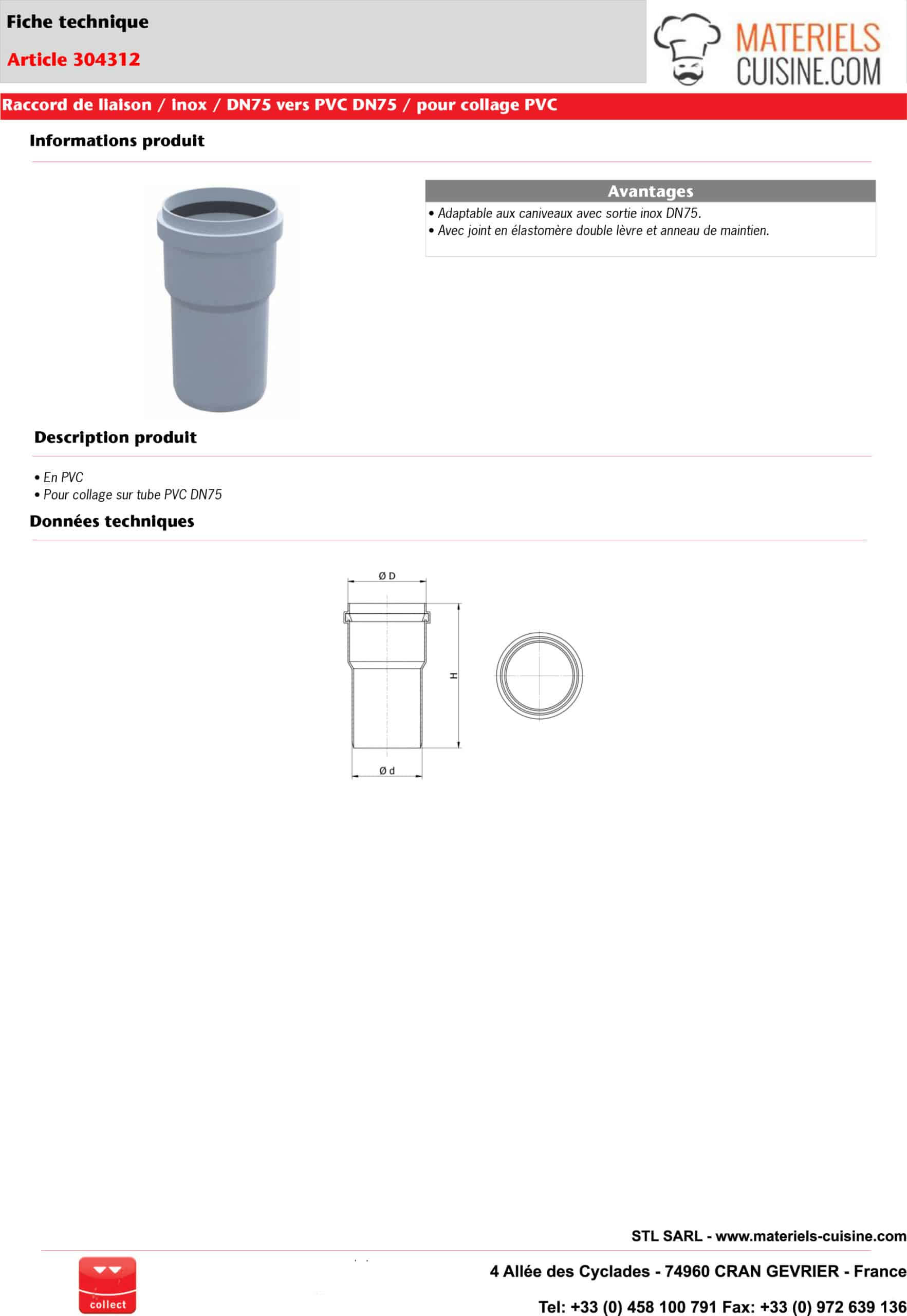 Raccord de liaison à joint EPDM pour manchon de sortie (en PVC à coller)