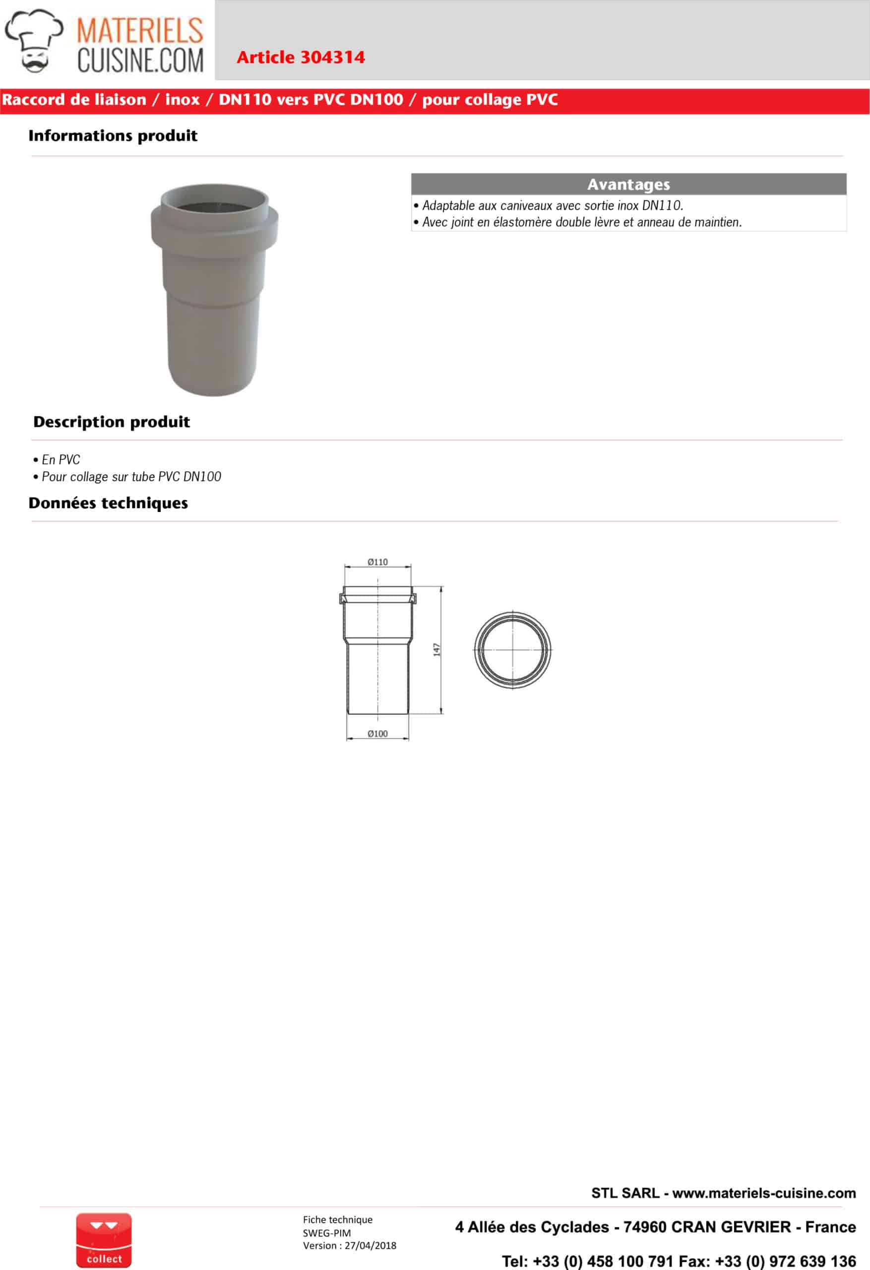 Raccord de liaison à joint pour manchon de sortie D1:110 mm – D2:100 mm