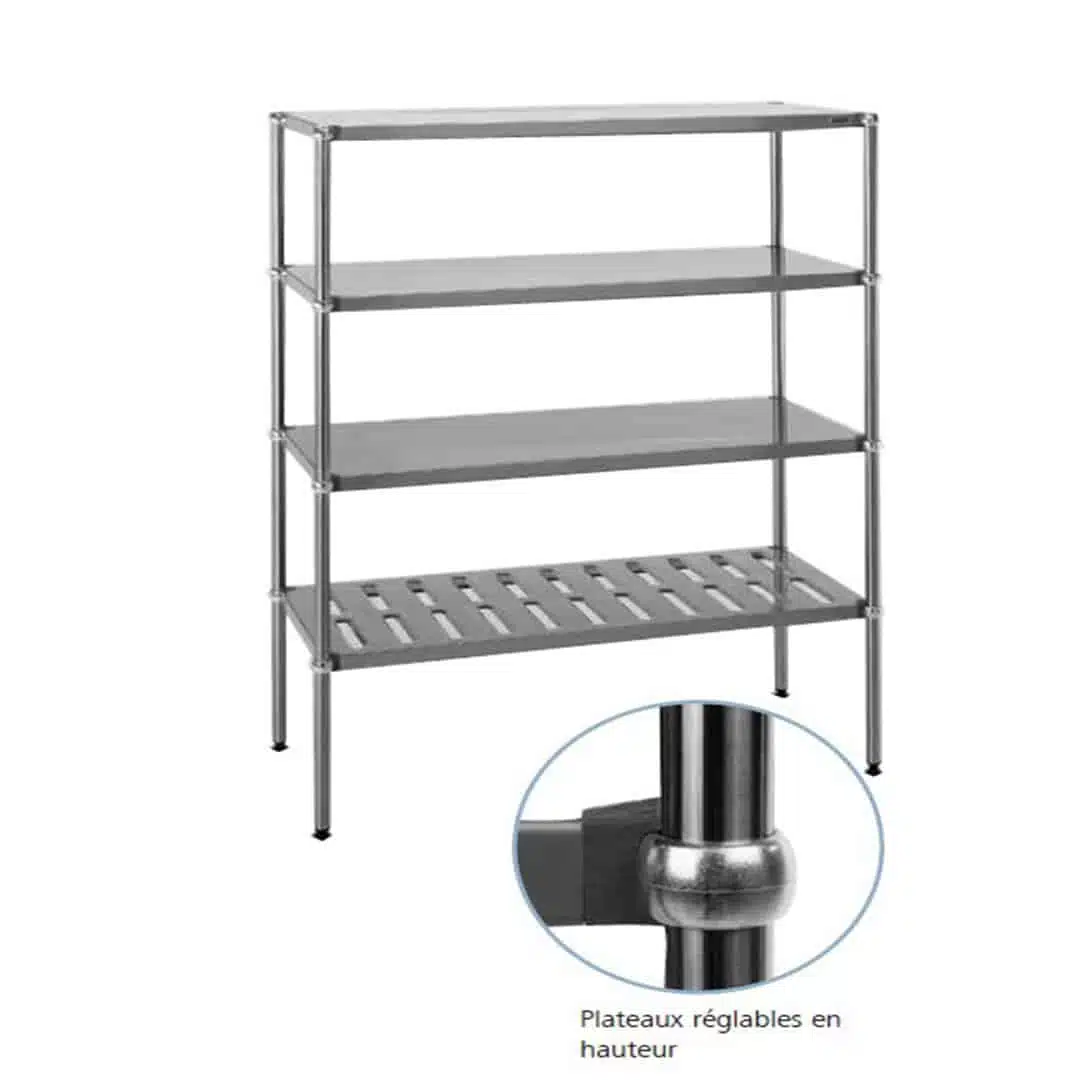 Rayonnage inox à plateaux pleins 4 niveaux L 2065 mm