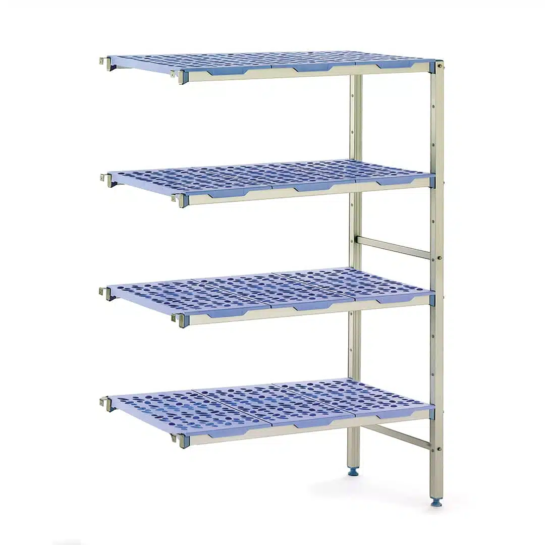 Rayonnage en angle clayettes Alu anodisé 3 niveaux P 400 mm, hauteur 1750 mm, un matériel adapté au stockage et l’entreposage en chambres froides, incontournable pour les établissements dans le domaine agroalimentaire.