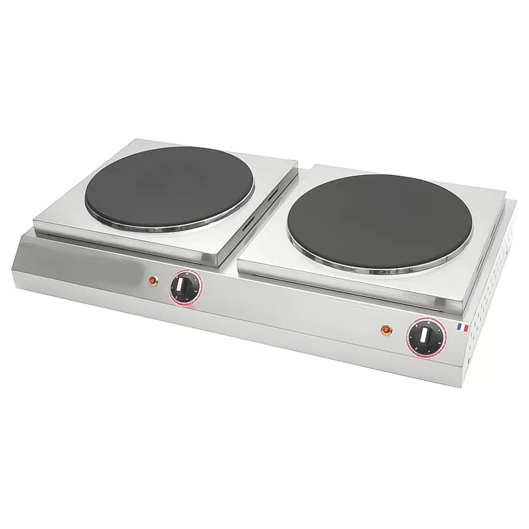 Réchaud électrique professionnel à deux plaques, idéal pour garantir une cuisson parfaite de vos produits alimentaires.