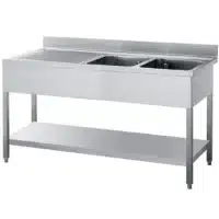 Plonge soudée sur pieds carrés avec étagère, inox ferritique, 2 bacs, longueur 1800 mm