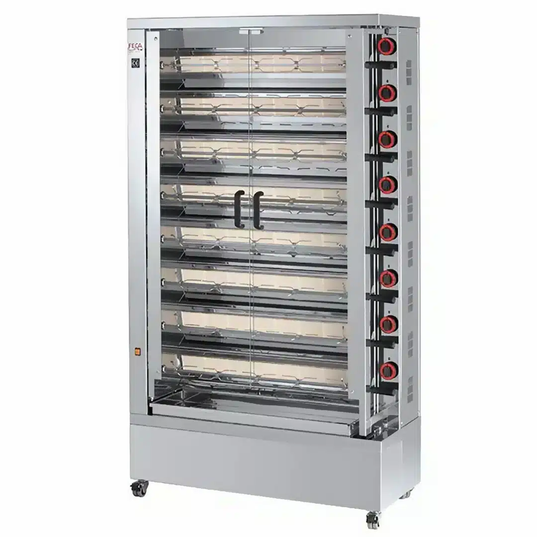 Rôtissoire électrique simple modèle 840 EKO-E, 8 broches, un matériel professionnel conçu pour griller à la perfection jusqu’à 40 et 48 poulets, allie praticité et robustesse pour les restaurateurs.