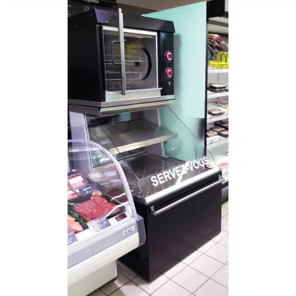 Module complet composé d’une rôtissoire et d’une tour pour la vente de poulets sous coque