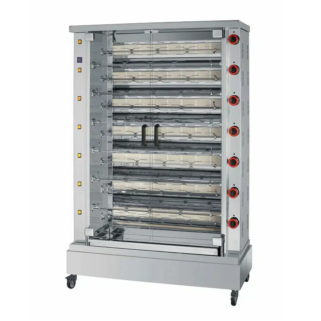 Rôtissoire industrielle à rayons infrarouge IND-SIN-7 avec brûleur à gaz 7 broches 42 poulets