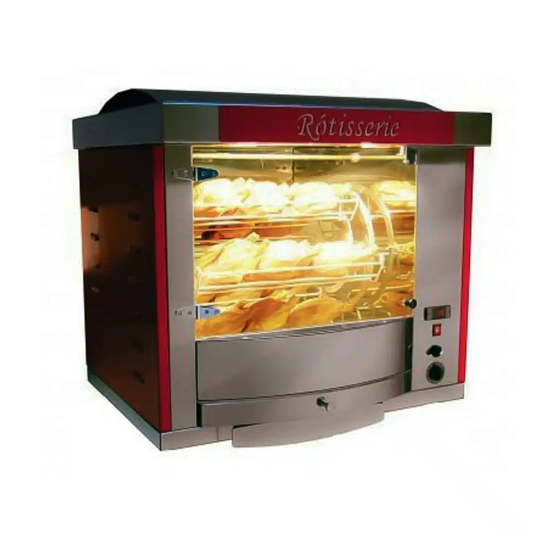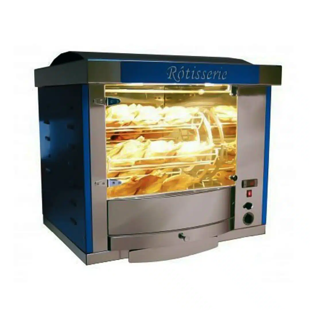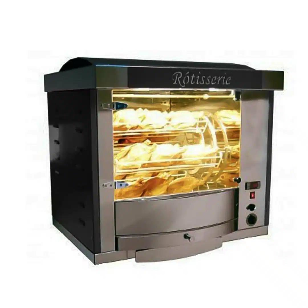 Découvrez la rotissoire à Balancèlle modèle FUSION5, équipée de vitres bombées panoramiques pour une visibilité optimale et une cuisson uniforme. Conçue pour économiser l’énergie grâce à son appareil calorifugé, cette rôtissoire est idéale pour les professionnels de la restauration cherchant à allier performance et esthétique.