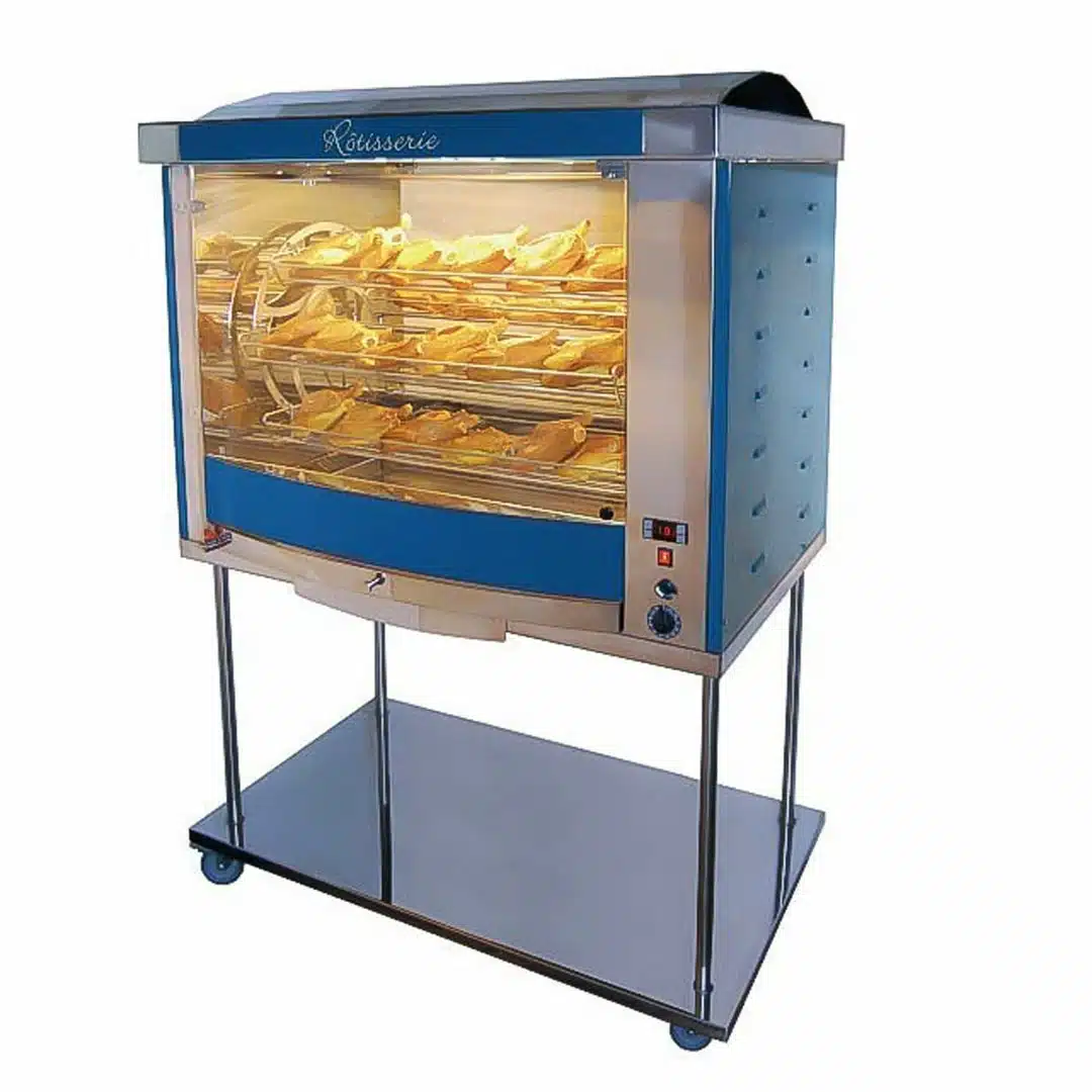 La rôtissoire professionnelle à balancelle modèle FUSION7C, montée sur un châssis inox à roulettes, est idéale pour les professionnels de la cuisine (CHR) cherchant à allier performance et économie d’énergie. Avec ses vitres bombées panoramiques et sa construction tout inox, elle offre une visibilité optimale et un nettoyage facile.