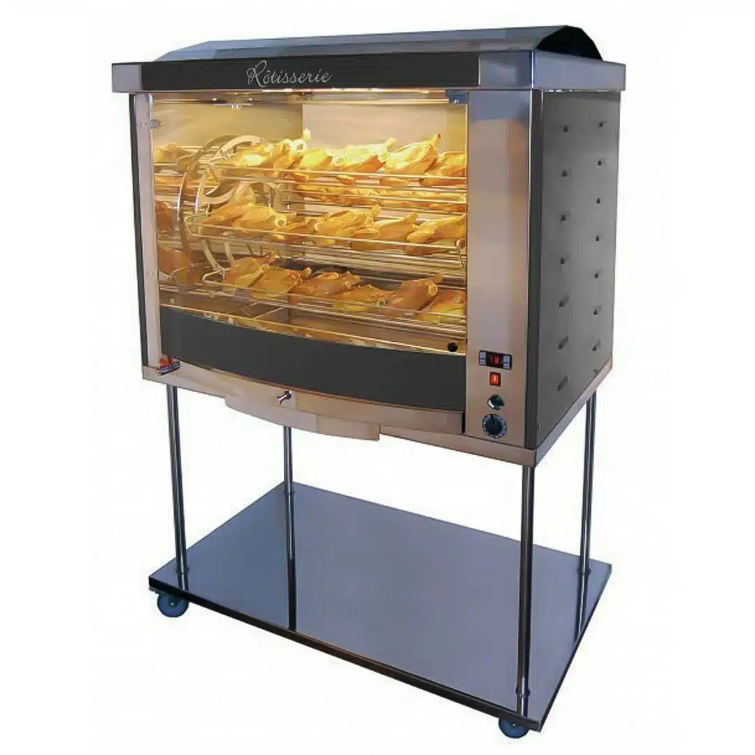 Rôtissoire Professionnelle à Balancelle FUSION7C sur Châssis Inox à Roulettes