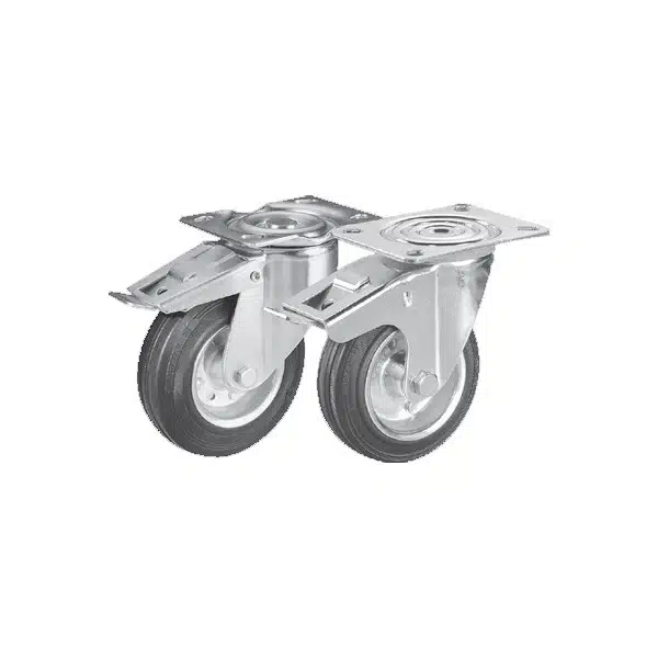 Roulettes ø 125 mm chape zinguée (2 avec freins, 2 sans frein)