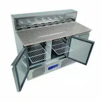 Saladette réfrigérée, +2 + 8 °C, 288 L, plan de travail granit, 2 portes, GN1/6 x5