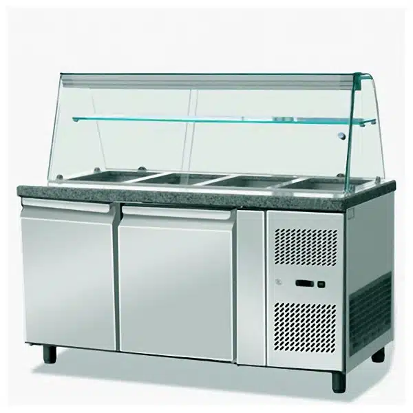 Saladette réfrigérée, 0 + 8 °C, 502 L, 260 W, surface en granit, 2 portes, GN 1/1 x 4