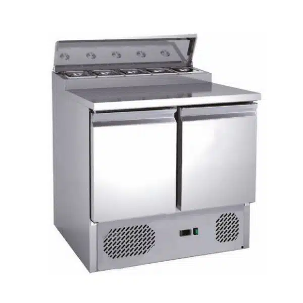 Saladette réfrigérée, +2 + 8 °C, 254 L, plan de travail inox, 2 portes, GN1/6 x 5