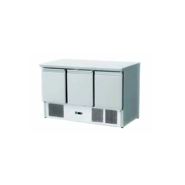 Saladette réfrigérée, +2 + 8 °C, 368 L, 400 W, plan de travail inox, 3 portes