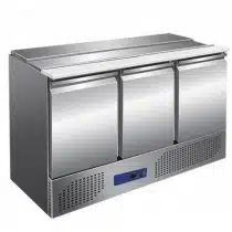 Saladette réfrigérée, +2 + 8 °C, 368 L, plan de travail inox, 3 portes