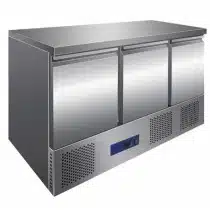 Saladette réfrigérée, +2 + 8 °C, 368 L, plan de travail inox, 3 portes