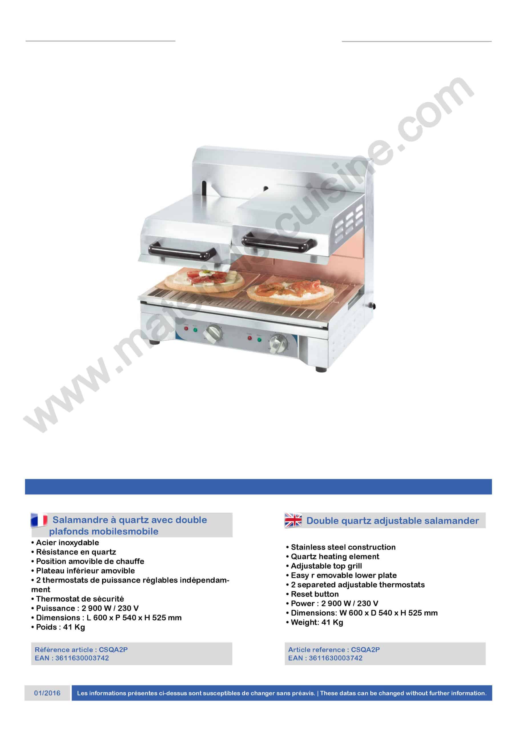 Catégories : Appareil Snacking électriques, Cuisson, Matériel snacking, Salamandre de cuisine professionnelle