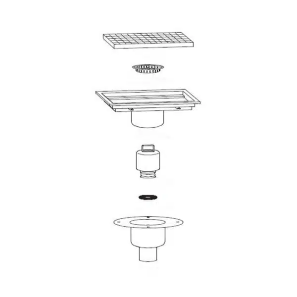 Le caniveau en inox avec cuvette réglable de 500 x 500 mm, doté d’une sortie verticale centrée de 100 mm de diamètre, assure une gestion efficace des eaux usées. Il est essentiel dans les secteurs de la restauration et de l’hôtellerie.
