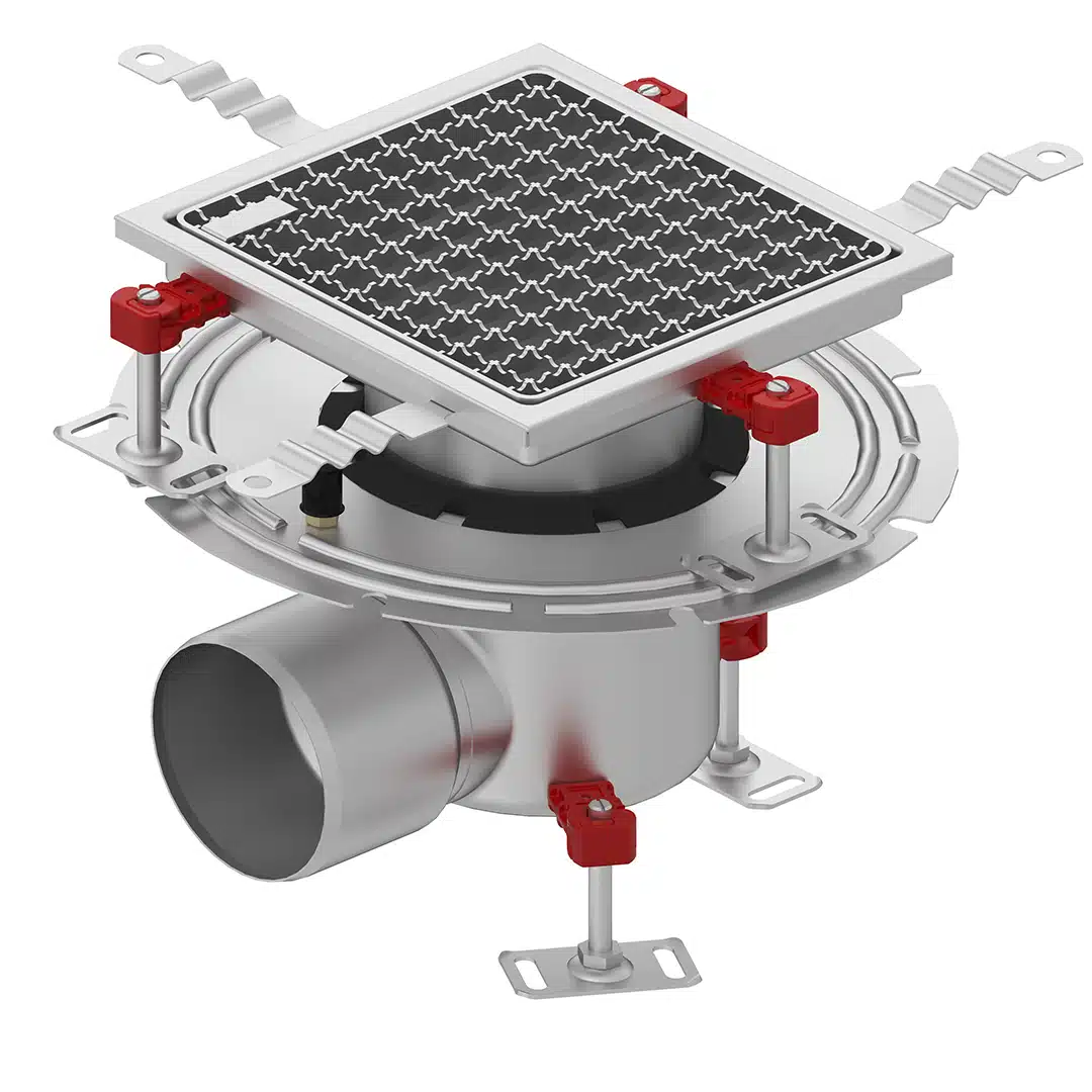 Siphon Eskis H-First avec grilles inox 200 x 200 mm sortie horizontale Ø 110 mm