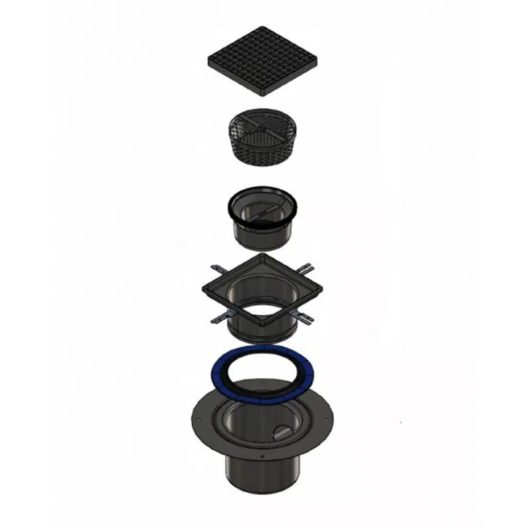 - Système siphoïde : Avaloir à cloche inversée avec joint EPDM surmoulé.