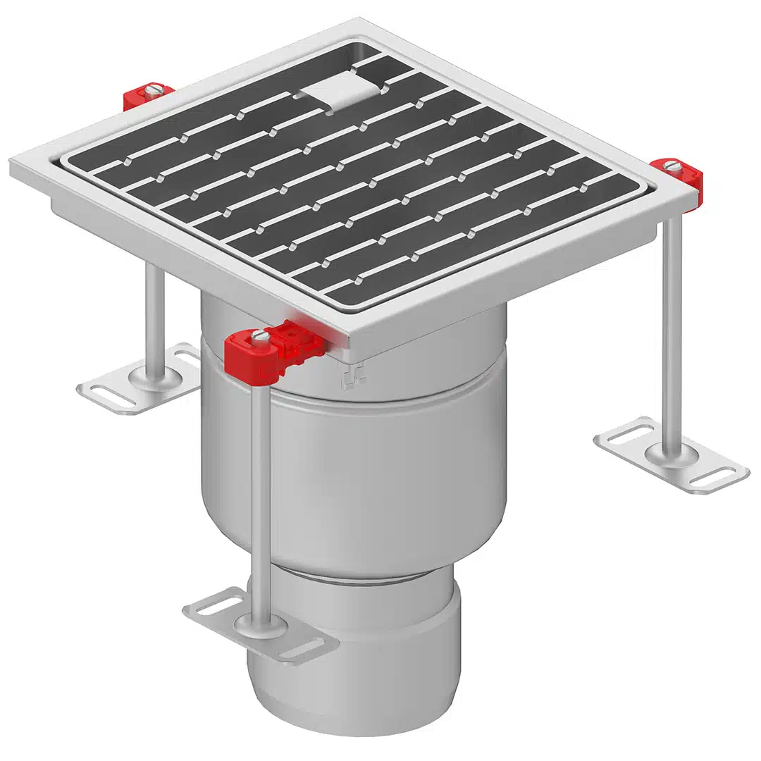 Siphon monolithique inox 250 x 250 mm avec grilles inox – Cadre réglable