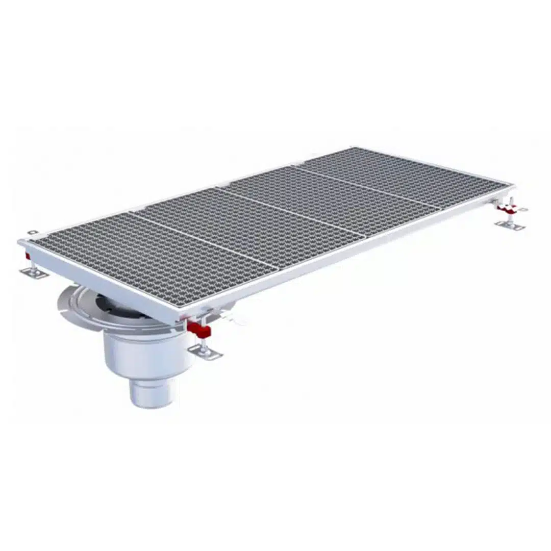 • Le caniveau est livré avec une grille incluse. De plus, la couverture caillebotis est antidérapante, avec crantage double et finition électropolie.