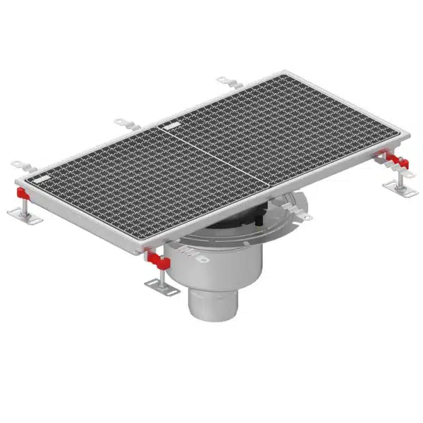 Caniveau téléscopique Epur HygieneFirst avec grilles caillebotis 800 x 800 mm sortie verticale centrée Ø 110 mm