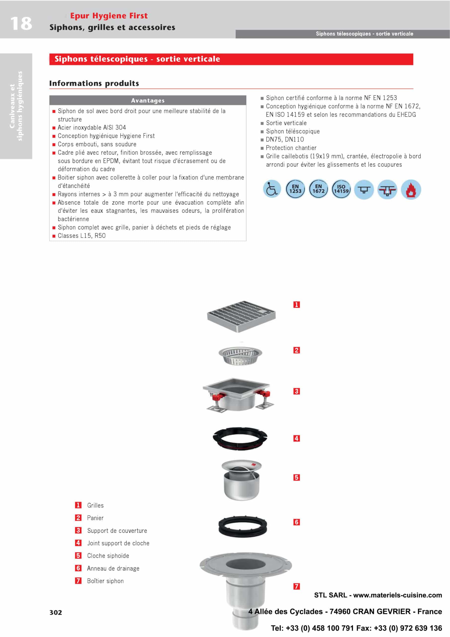 Avantages du Siphon inox avec grilles Epur HygieneFirst :
