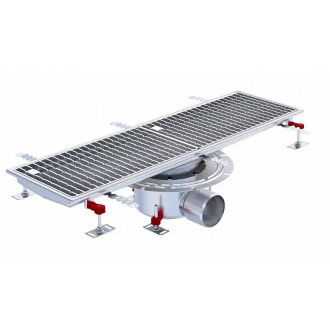 Caniveau Inox Sortie Horizontale avec Grilles, Ø 110 mm