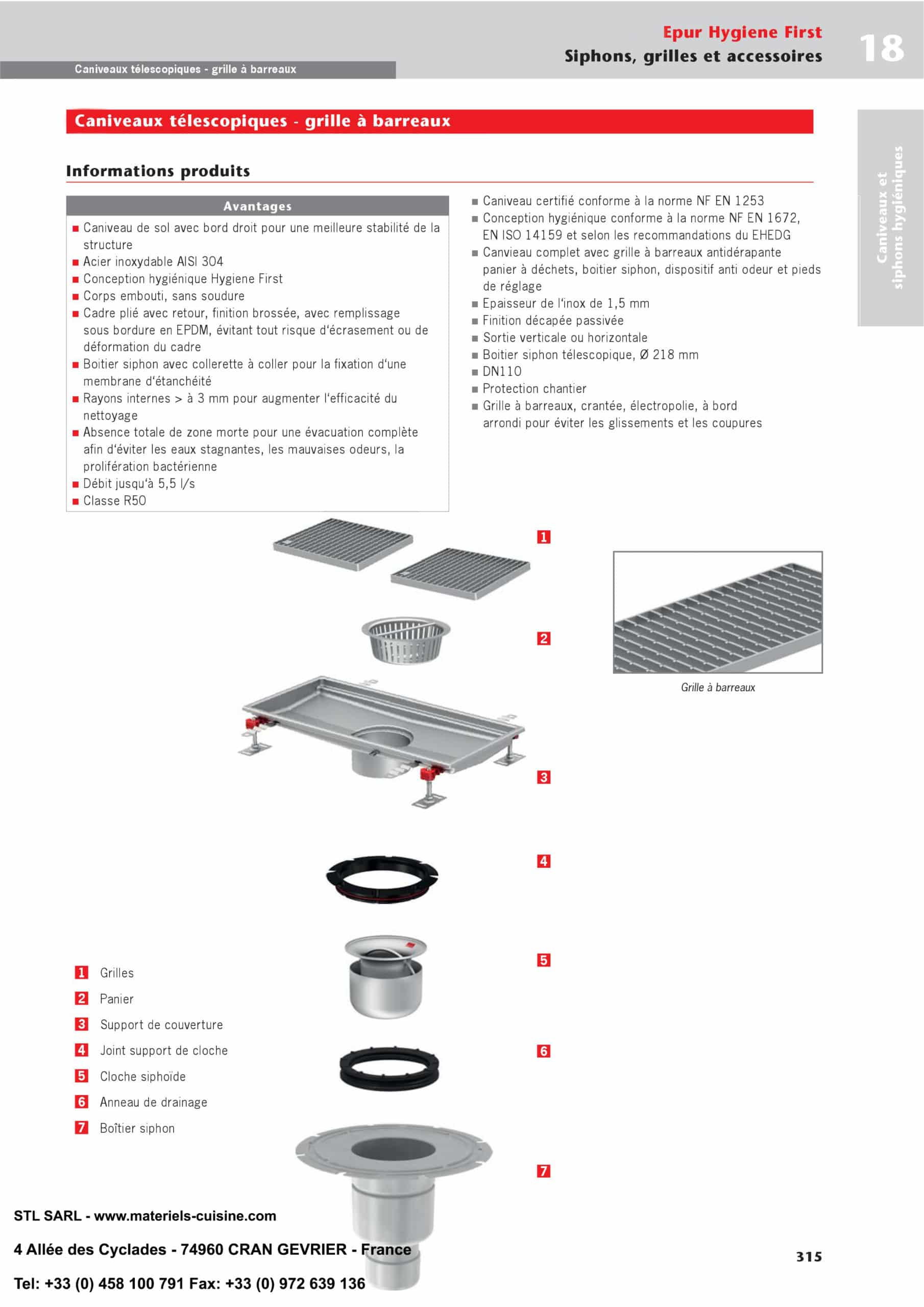 - Normes : Certifié conforme à la norme NF EN 1253, conception hygiénique conforme à la norme ENF N 1672, EN ISO 14159 et selon les recommandations du EHEDG.