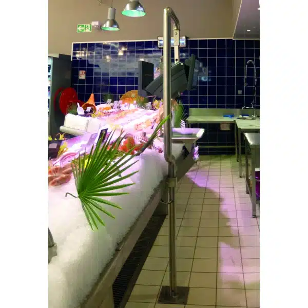 2 points de fixation : à l’arrière de l’étal + platine au sol