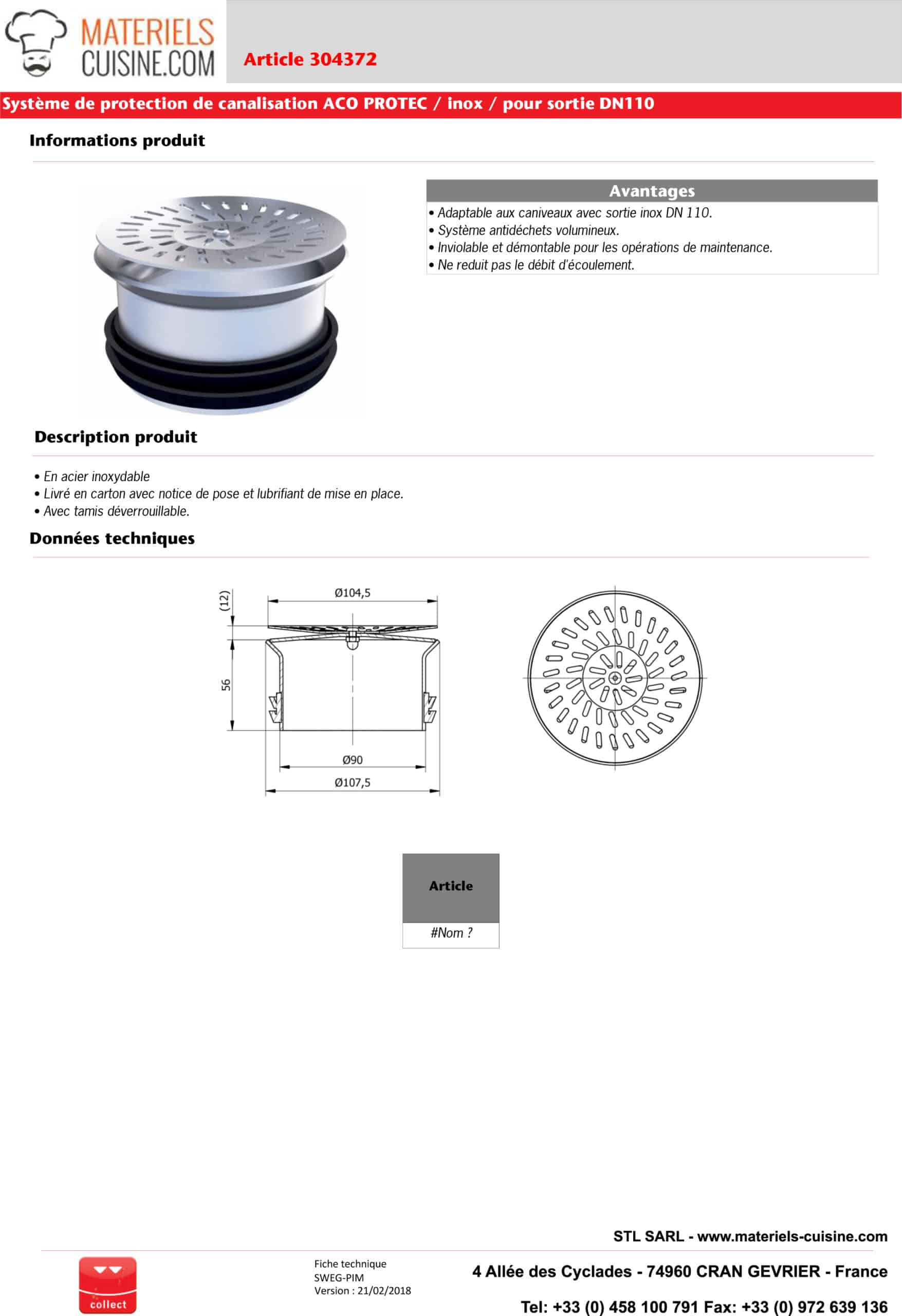 Adaptable aux caniveaux avec sortie inox DN 110.