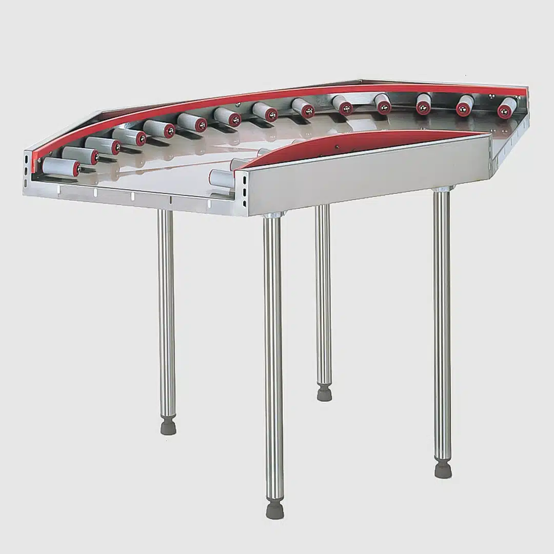 Table à rouleau avec plage et dosseret en virage à 90°, 4 pieds 1100 x 1100 mm