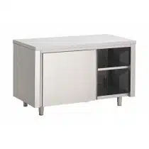Table armoire, portes coulissantes, inox AISI 430, L 1200 x P 700 x H 850 mm