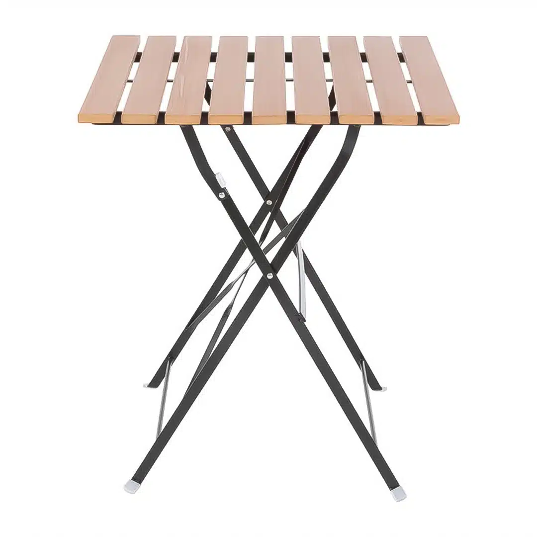 Table bistro carrée en imitation bois, robuste, adaptée pour les cafés, restaurants et les petites surfaces où l’espace terrasse est restreint: trottoirs et cours…