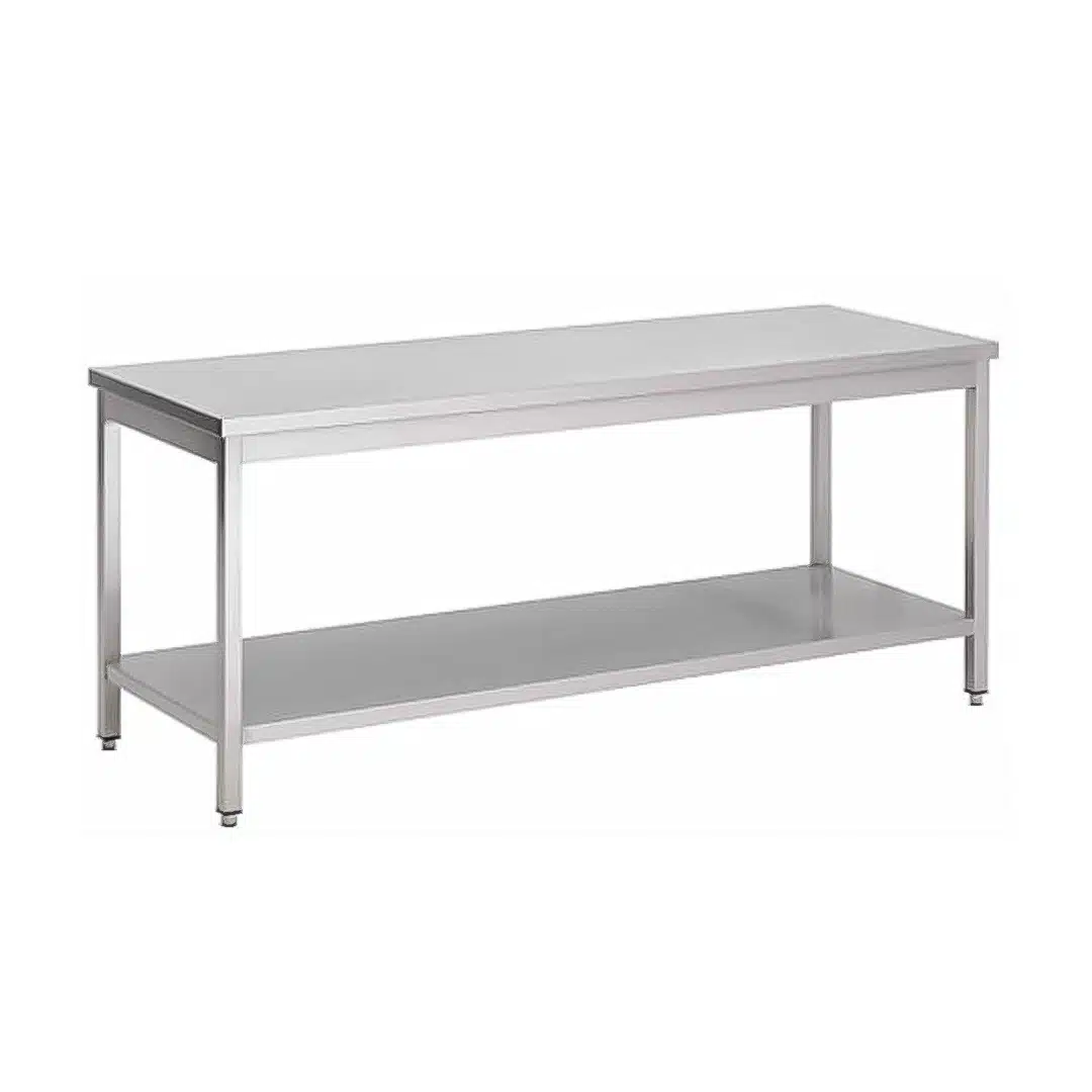 Table centrale avec tablette inférieure inox L 1800 x P 1000 x H 970 mm fabrication sur mesure