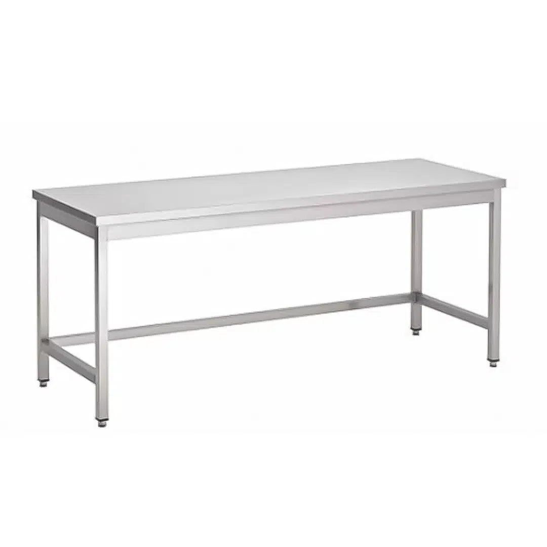 Table centrale sans tablette inferieure inox AISI 430 L 1600 x P 700 x H 650 mm, sur mesure
