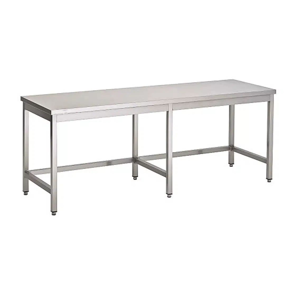 Table centrale sans tablette inferieure inox AISI 430 L 2200 x P 700 mm